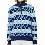 These jacquard knit sweaters feature an all-over argyle/diamond pattern design over light and dark blue bold stripes. The sweaters are lighter to mid-weight models, are unlined, and created to provide the perfect mix of insulation for warmth yet